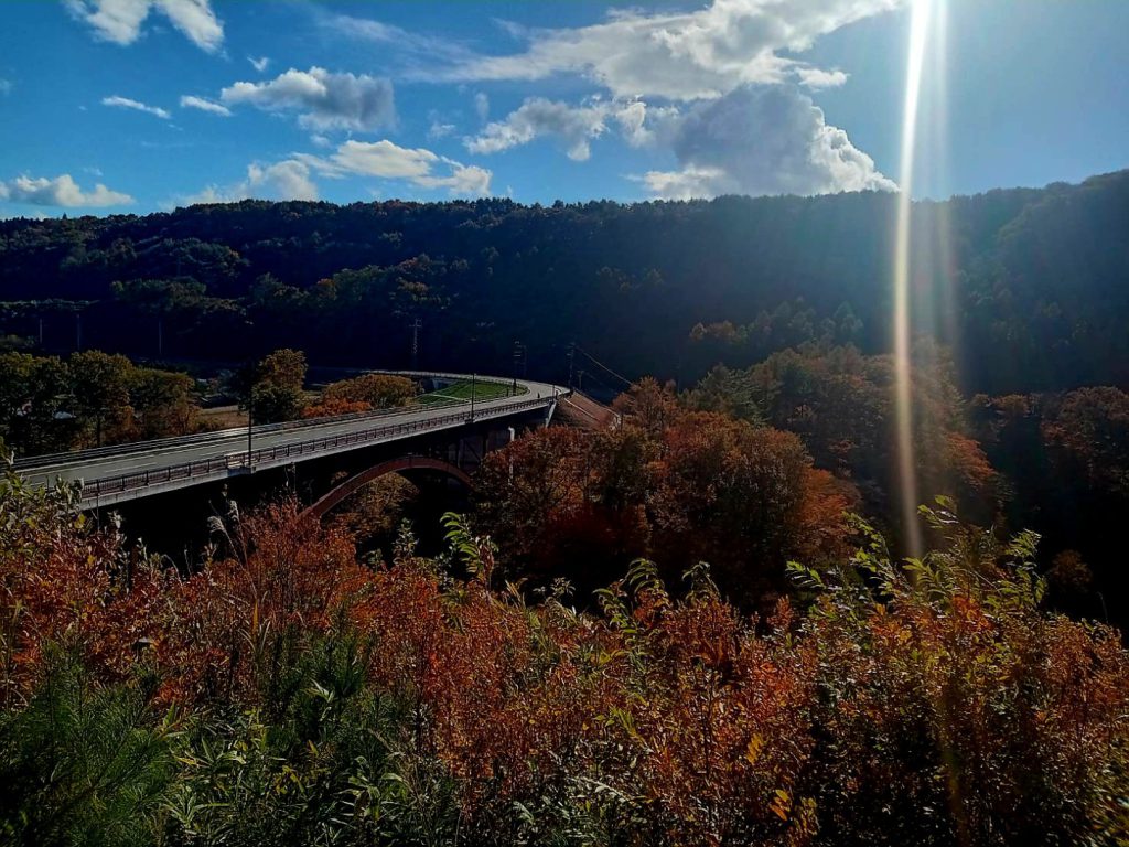 長さ281m・高さは谷底まで50mと阿武隈川上流にかかるアーチ型の鉄橋は