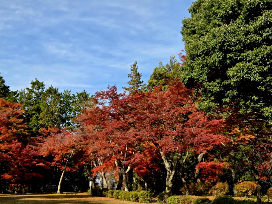 公園一帯に紅葉が群生しているので緑と相まってとても映えます。