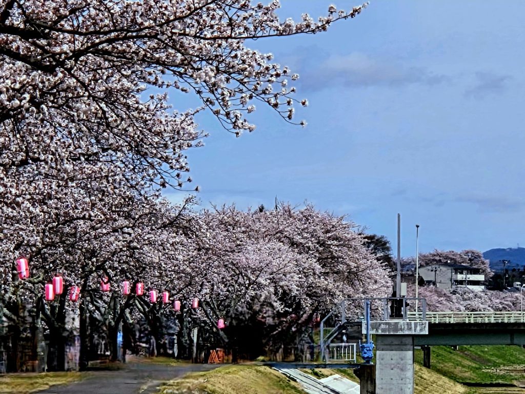 久慈川河川敷の桜並木 満開